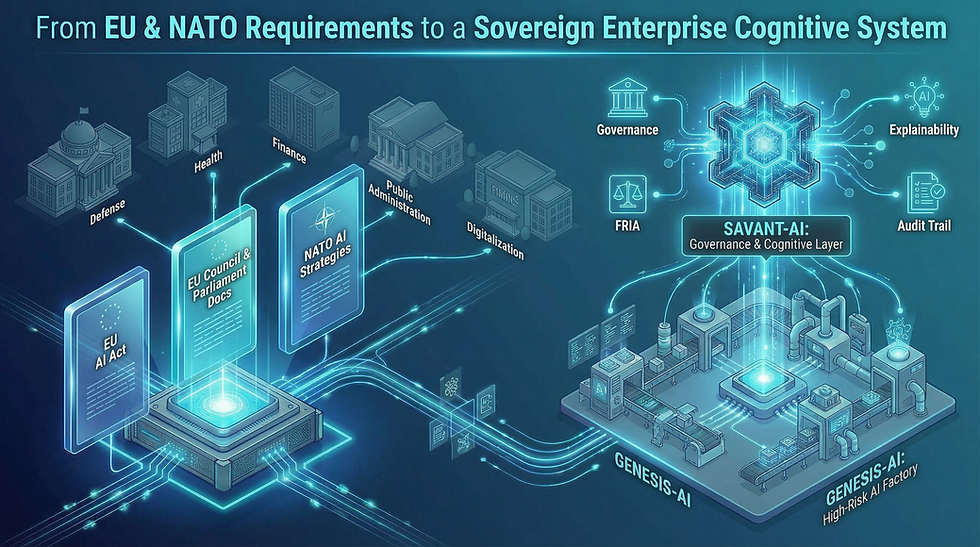 GENESIS-AI and SAVANT-AI were designed precisely as such a pair of products—a technical "engine" and a governance superstructure—embedded directly in EU and NATO regulatory requirements.